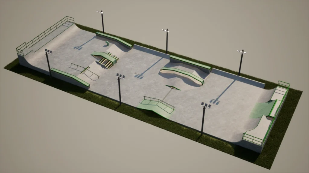 A pista foi projetada para oferecer uma experiência completa da modalidade street, que tem o objetivo de simular os obstáculos urbanos tradicionais dentro de um circuito fluido e sem interrupções. A equipe da Overall projetou e construiu elementos variados que estimulam a criatividade técnica dos praticantes. O espaço conta com quarters de alturas variadas, rampas inclinadas, escada, euro gap, hubbas em balanço, concreto pigmentado e iluminação de LED nos obstáculos e degraus da escada, proporcionando, além de uma sessão divertida, um visual incrível.