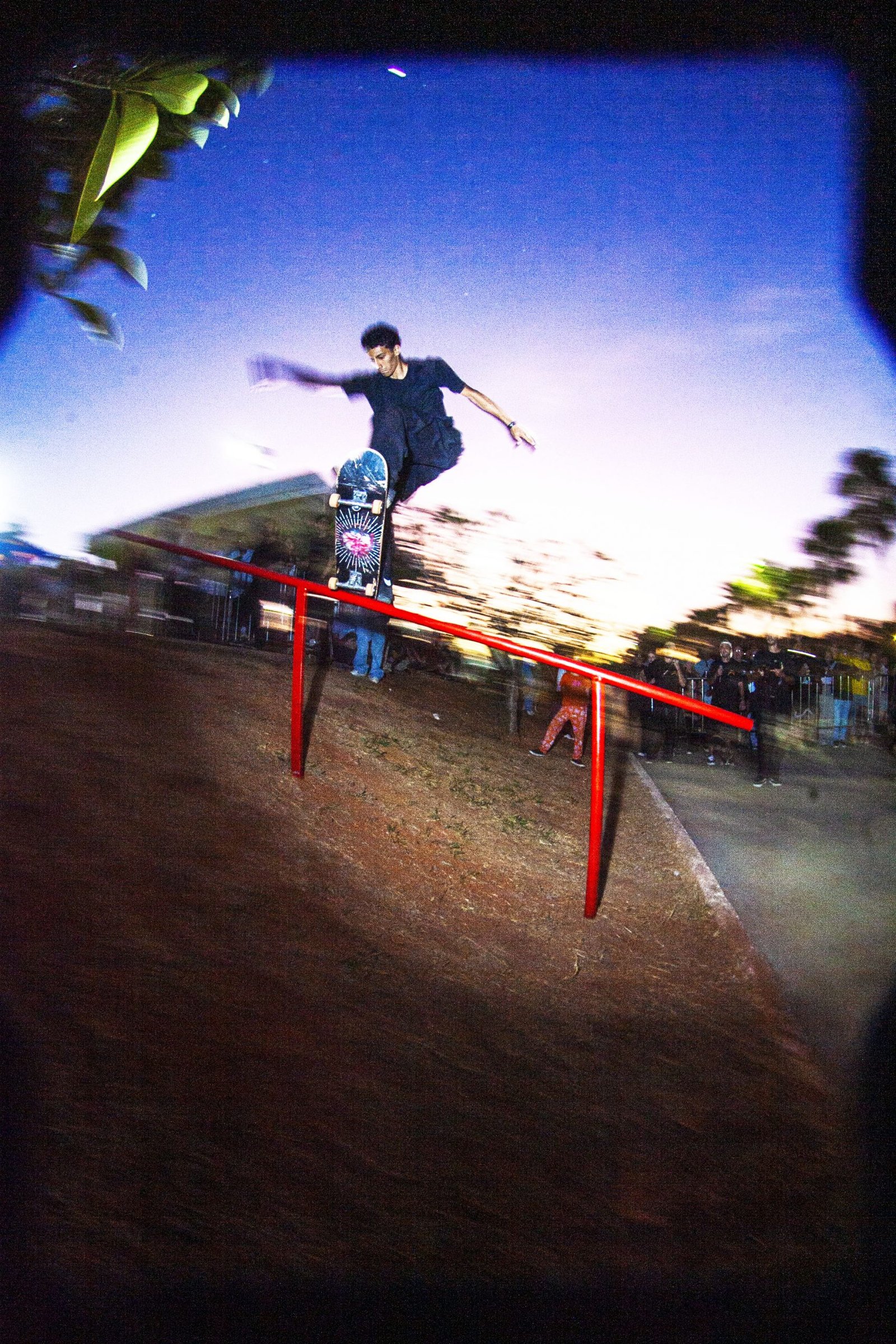 Diferente de um evento pontual, as sessões registradas mostram a pista sendo utilizada de forma contínua e compartilhada. Skatistas dividem o espaço, alternam linhas e constroem leituras diferentes a cada volta.