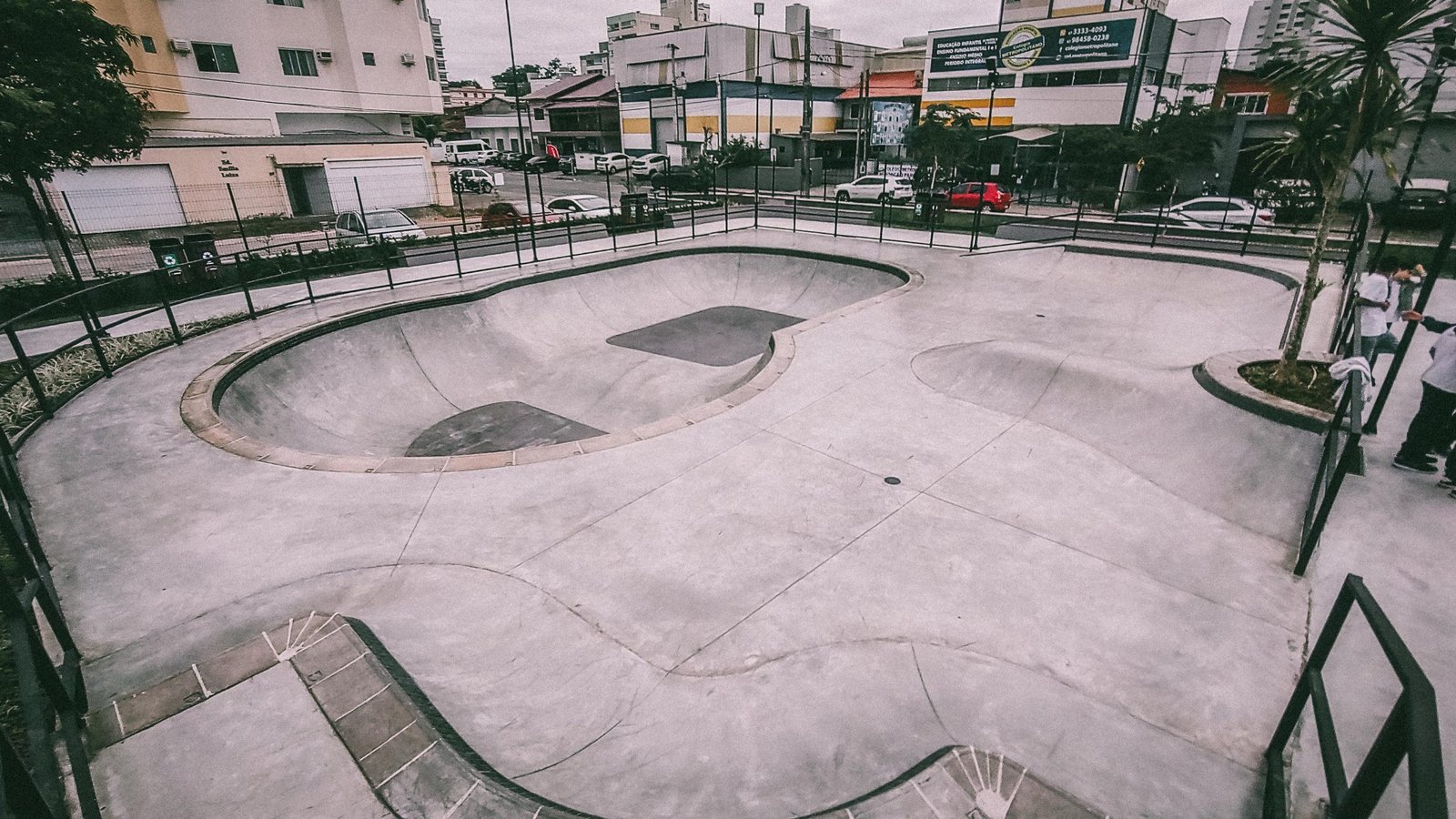 O Bowl Indaial, concluído para um empreendimento centrado no skate como atividade principal, com uma área de 270m², largura de 15m e comprimento de 17m, é projetado para atender às modalidades de Bowl e Flow Park. Com alturas variando de -1,00m a -1,40m, o bowl apresenta uma construção completa em coping block e pastilha, proporcionando durabilidade e estilo. O Flow Park, localizado na plataforma, oferece diversas opções de transições e alturas, tornando-o ideal para aprendizado e progressão.