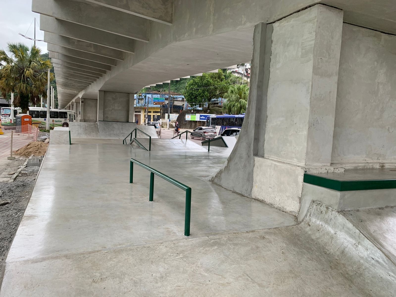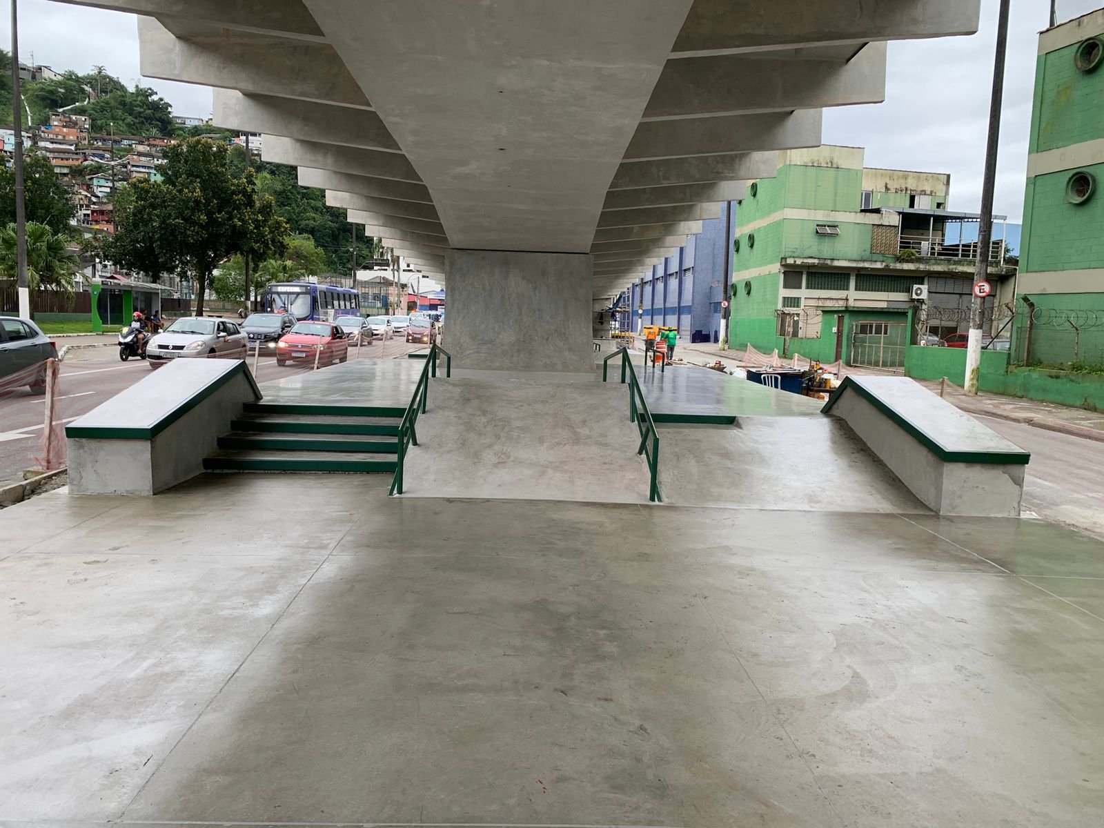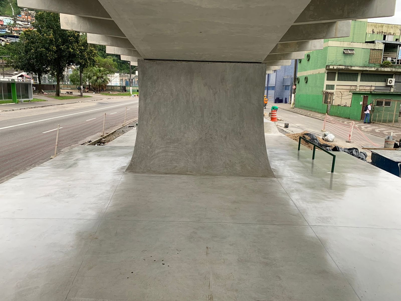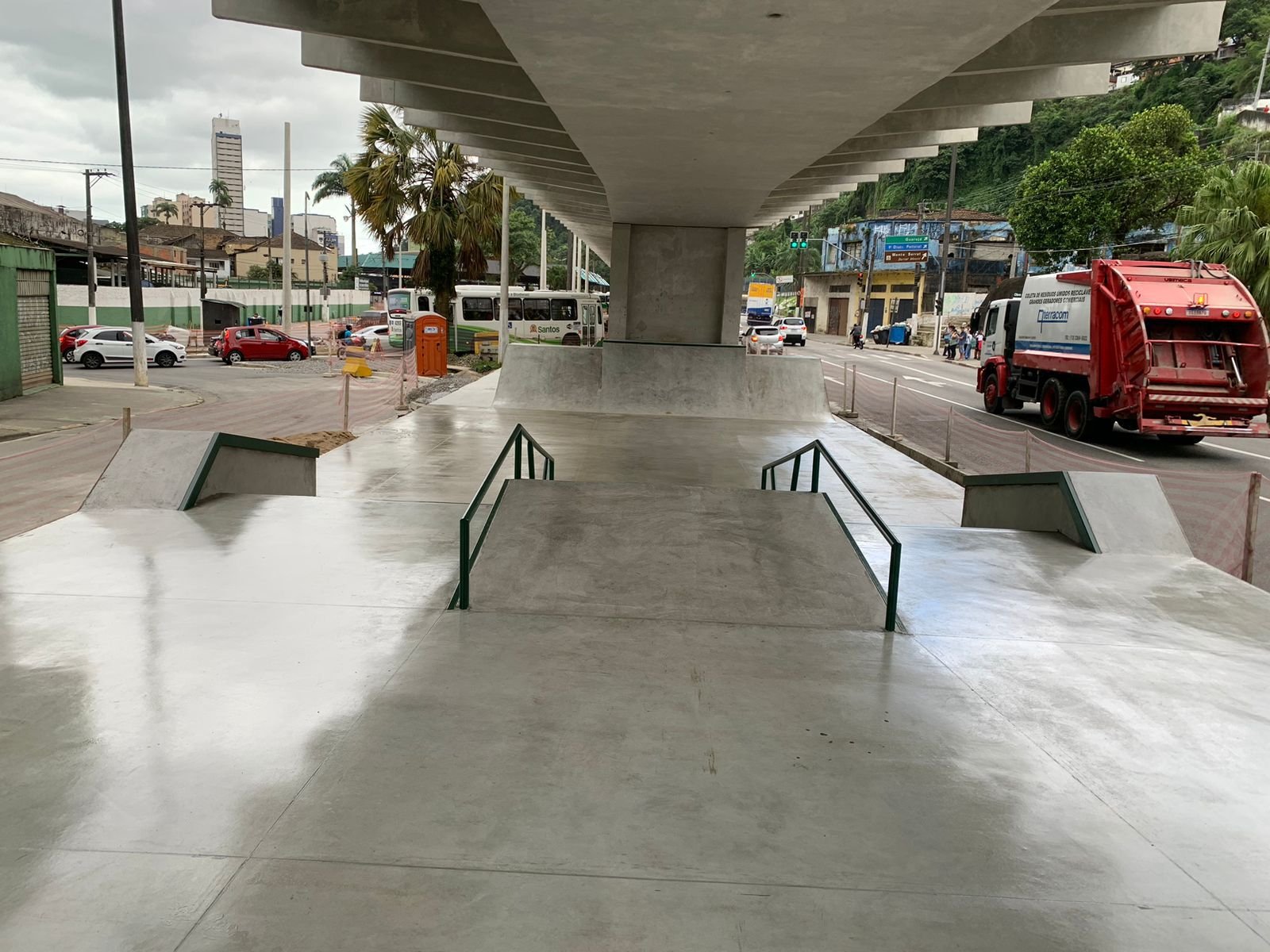 O Santos Skatepark, localizado em Santos, SP, essa skatepark pública é uma obra intrínseca à modalidade de street, destacando-se pela sua adaptabilidade e criatividade em um ambiente desafiador. Este projeto, executado sob um viaduto existente, exigiu cuidado para respeitar os massivos pilares já presentes, resultando em uma integração única entre a estrutura urbana e o skate. Com uma ampla área de 432,34m², largura de 8,40m e comprimento de 50m, o Santos Skatepark é meticulosamente projetado para oferecer um street completo. As alturas variam desde a plataforma de 50cm até a pirâmide de 40cm, passando por quarters com alturas de 1.00m, 1.30m e 0.70m.